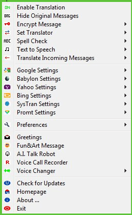 Кроме он-лайн переводчика на 72 языка, программа имеет встроенную функцию для проверки орфографии, если будет допущена ошибка при наборе текста, то на это программа выдаст характерный звуковой сигнал. А также с её помощью можно сделать запись разговора, зашифровать сообщение и преобразовать входящую текстовую информацию в речевую, которую Вы сможете получать в фоновом сопровождении, его обеспечивает музыкальный плеер.