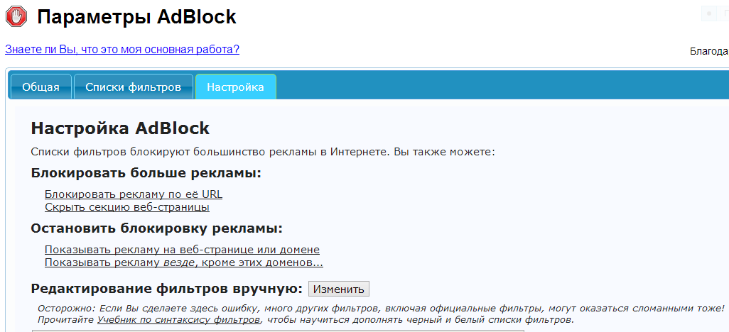 После установки расширения в правом верхнем углу браузера устанавливается значок в виде кисти руки в восьмиугольнике на красном фоне, если сделать по нему клик правой кнопкой мышки, то откроется контекстное меню, в котором выбираем строку настройки и делаем клик по ней, в результате откроется окно (см. Рис. 2)