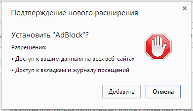 И так, начнём по порядку: устанавливаем расширение AdBlock (сделайте клик по активной ссылке AdBlock) и в открывшемся окне (см. Рис.1) кликните по синей кнопке «+БЕСПЛАТНО», которая расположена напротив расширения AdBlock, а затем подтвердите установку нового расширения, сделав клик по кнопке «Добавить». На этом установка расширения закончена.